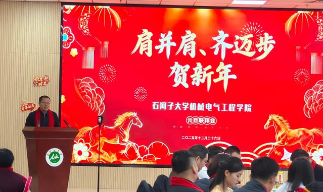 2025年12月26日下午,机械电气工程学院“肩并肩、齐迈步、贺新年”元旦联拜会在双语楼3楼学术报告厅温情启幕。校党委常委、副校长李景彬,企业代表以及学院师生欢聚一堂,载歌载舞话情谊,同心筑梦迎新年,现场气氛热烈融洽,暖意融融。